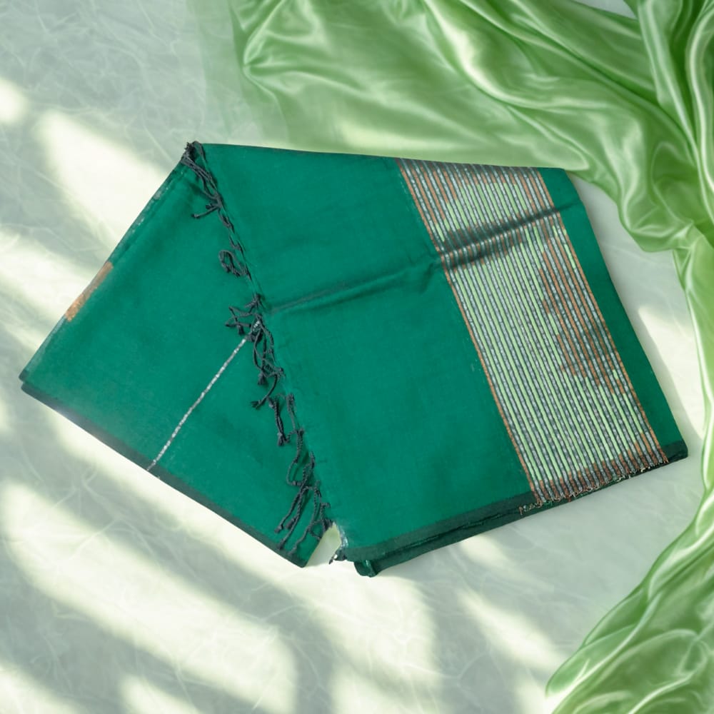 This hand-woven Shibori cotton stole in sea green showcases expert craftsmanship through its intricate tie-dye patterns and natural cotton texture. Lightweight and breathable, it offers both comfort and style, making it ideal for elevating casual and formal ensembles. The rich sea green hue adds a refreshing, sophisticated touch to any wardrobe.
