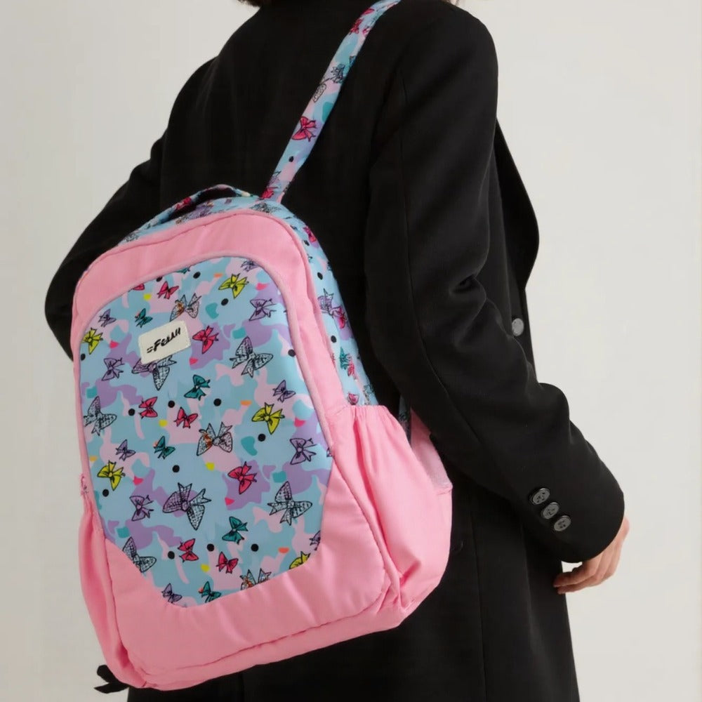 The Fgear Bow Printed Backpack combines expert design with playful aesthetics, featuring a unique bow pattern that enhances its visual appeal.