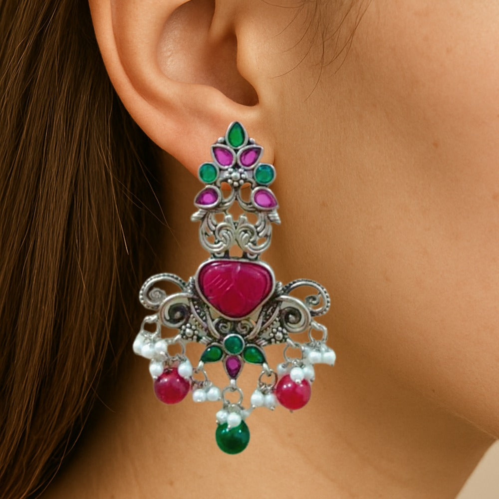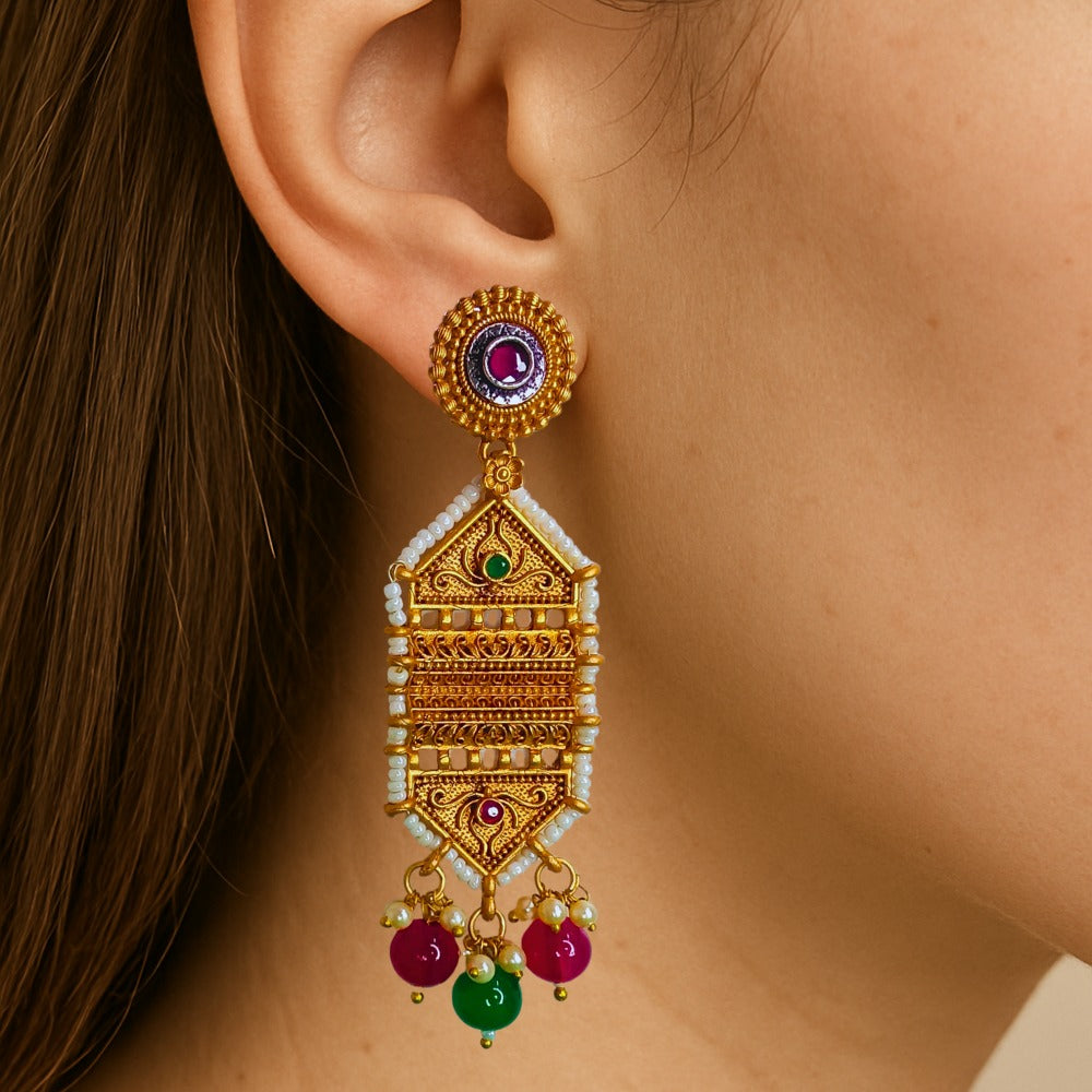 Chandbali earrings reimagined with a contemporary hexagonal silhouette, these drop pieces blend traditional Indian jewelry aesthetics with modern geometric design.
